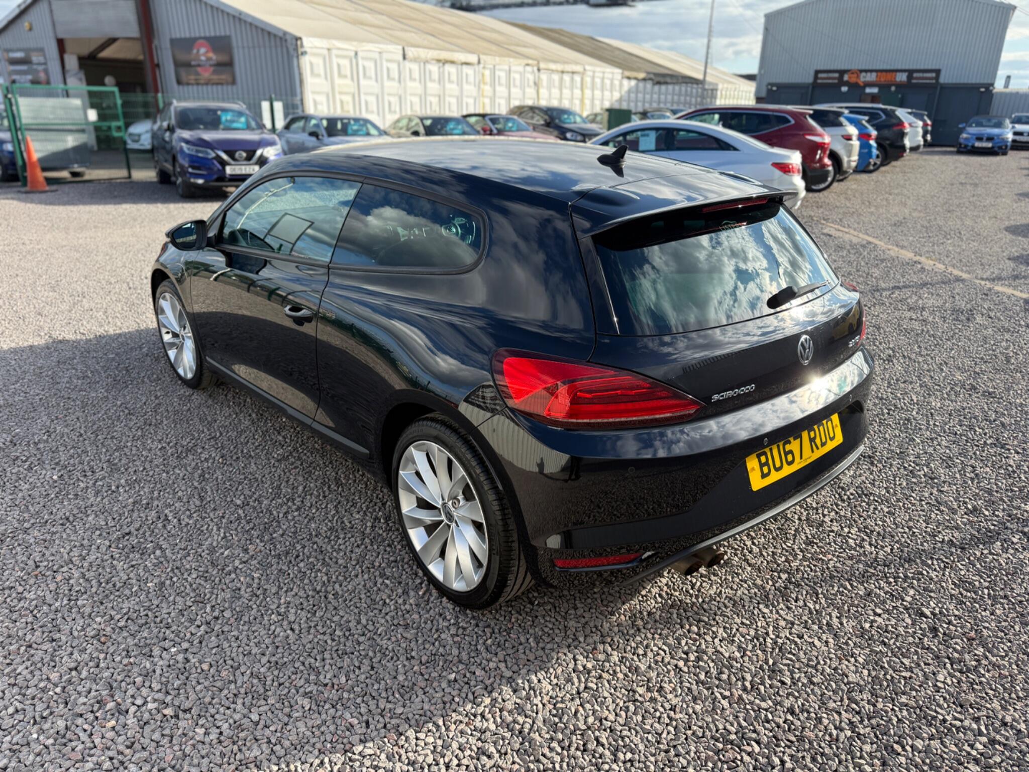 A well presented Volkswagen Scirocco GT finished in black, offering strong petrol performance, a smooth DSG automatic gearbox, and a sporty three door coupe design with everyday usability.